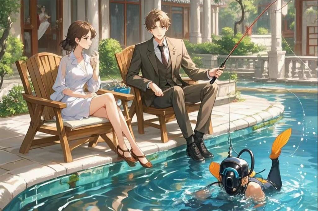 十分钟后,几个潜水员在水下一个接着一个的往他们的鱼钩上挂鱼。林然惊讶地看着这一幕。