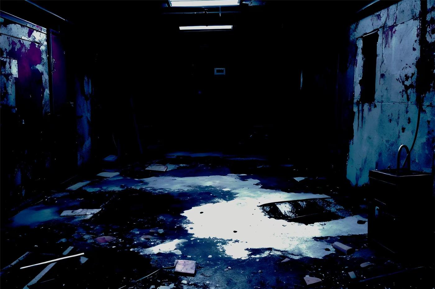 昏暗的环境内,四周满是厚重冰冷的石墙,上面满是斑驳的痕迹和暗红色的血迹,地板也是传来腐烂的植物气味,狭小的空间里裂痕交错,地上还摆放着几个沉重的铁锁,上面满是锈迹。