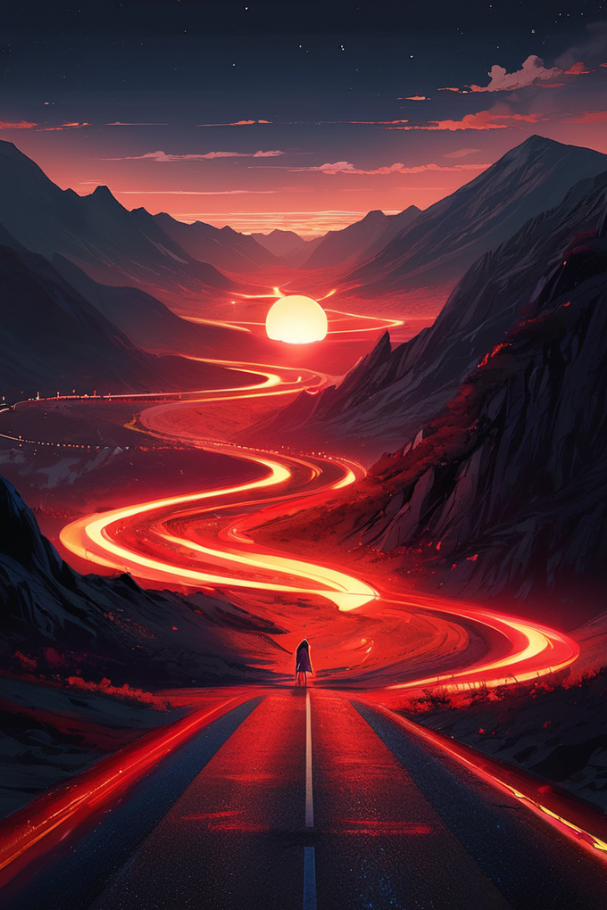 在一公里外的盘山公路上,突然出现一个火红的圆圈。