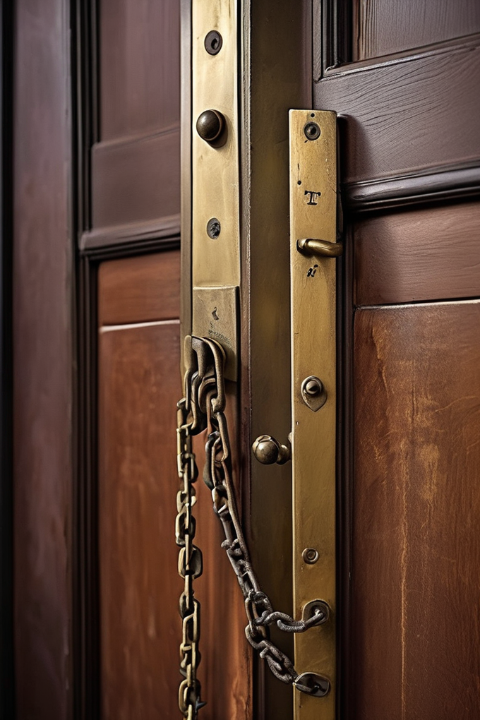 这样的话,从外面打开房门,是有一条链子扯着的。房门只能推开一个细小的缝隙。