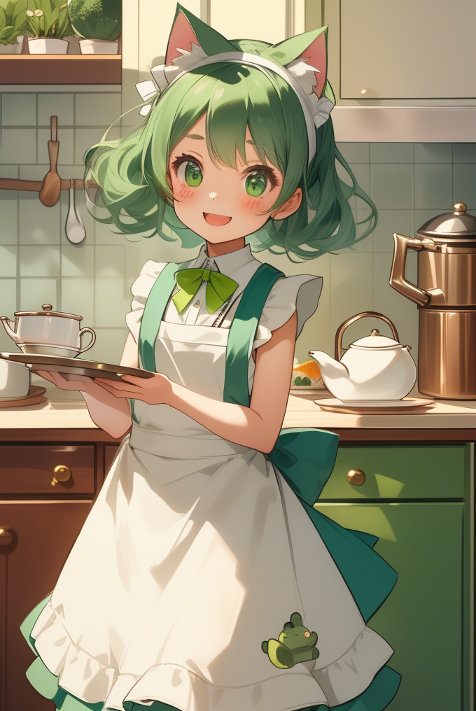 让陈木惊讶的是,茶茶居然穿着围裙,手里用诡气托着十几个餐盘层层叠叠。