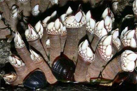 他上次开船出来敲生蚝时,倒是看到类似的,他知道是藤壶,本地人叫佛手。