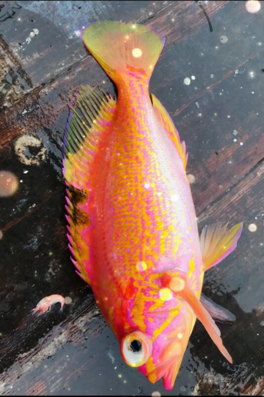 所谓的金菠萝,其实是粤区的称呼,慢慢延伸到他们这边,其学名应该叫英丽鱼,又名西付罗鱼,斑眼花鲈,