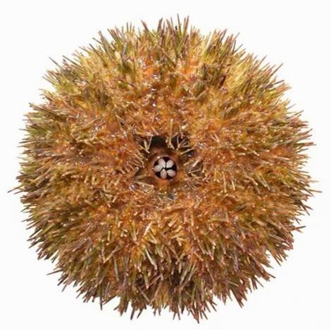 马粪海胆与寻常所见的海胆区别就是,外刺比较短,普通的海胆外刺能长到五六公分的长度,
