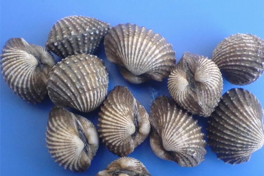 所谓的血蛤,学名叫泥蚶,形状与蛤蜊相似,但更为饱满,而且外壳带有数道凹槽,呈齿状,颜色浅灰或白色,