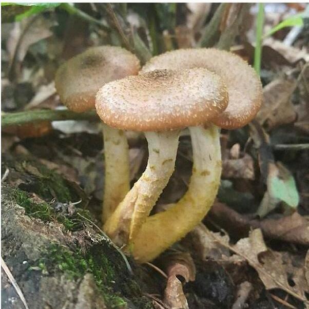 榛蘑和榆黄蘑区别还是蛮大的,未完全开伞的情况下,更像松茸的样子,表面也没那么光滑,带着深浅不一的条纹,颜色浅土黄色,