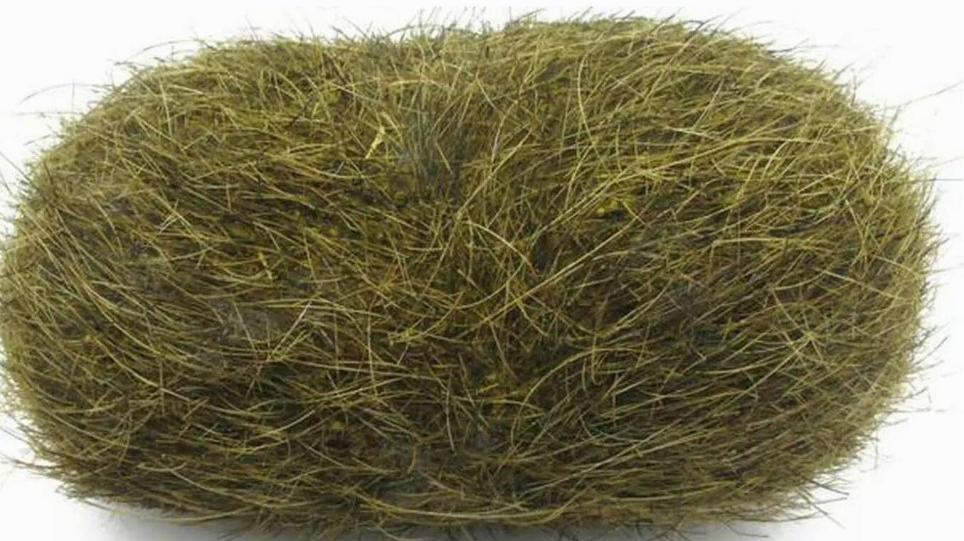 等到冲洗干净,这玩意也显露出了真容,呈椭圆形,外表呈褐黄色,附着一层毛发,就像一个毛球一样,