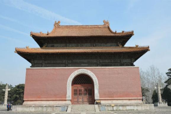 【这座大红门一共有三个门,中间的叫神门只有皇帝的棺椁能走,左边的叫君门,只有皇帝能走,右边的是臣门,是大臣们走的门。】