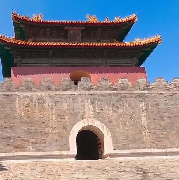 【方城明楼的下方有个通道,进去之后有个小院子,正对着通道的墙上,镶嵌着一块金碧辉煌的影壁墙,这里就是泰陵最核心的地宫区域了!】