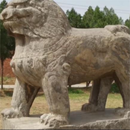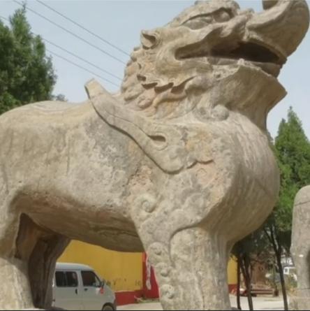 【再往前我们就能看到的这座像是狮子一样的石刻,是传说中专门守护英明神武的帝王,为他们传递讯息的神兽甪端。】