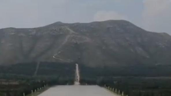 【金粟山的主体有三座山峰组成,中间的尖山便是唐玄宗李隆基的地宫所在,两边各有一座山峰,像是守卫一般守护着中间的尖山。】
