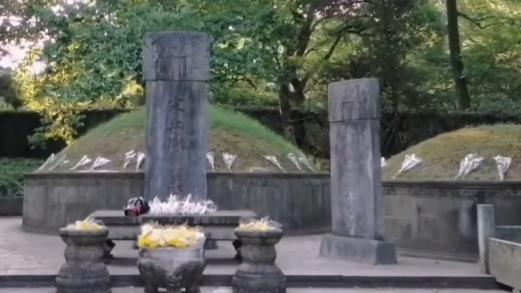 【这里有两座坟墓,正中间的这一座就是岳飞本人的墓,另一边的这一座就是他的儿子岳云的墓。】