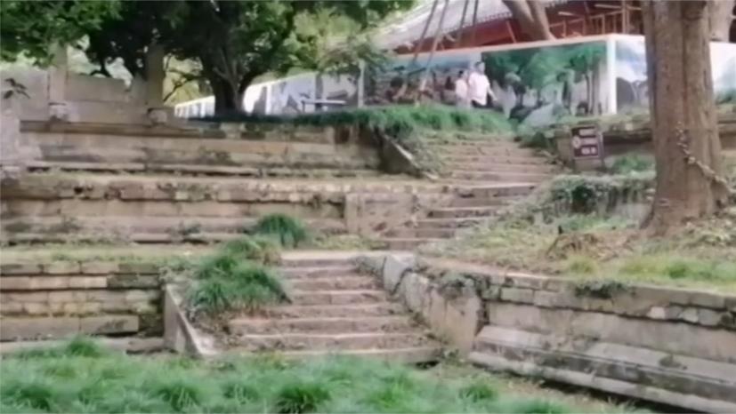 【我们现在看到的这些断壁残垣,都是明孝陵原有的享殿遗址,这座红色的建筑被称为小享殿,原来的享殿早就在太平天国的战火中被毁掉了。】