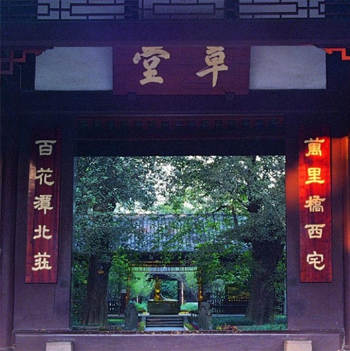 【杜甫草堂位于成都市青羊区,是老年的杜甫流寓成都时的住所。】