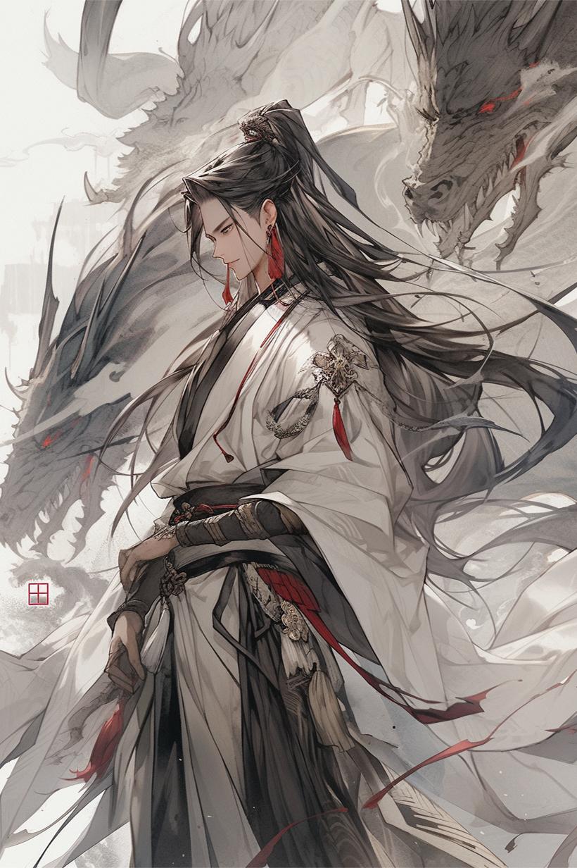男人面冠如玉,风流倜傥,身穿一袭华丽白袍,一头黑发束至脑后。