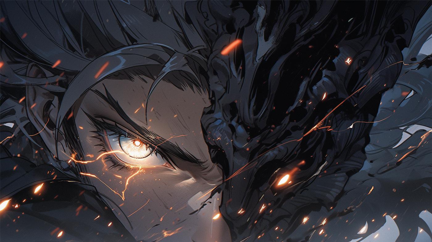 全身犹如被一层黑雾笼罩的男人趴在黑池边缘,四周全都是碎裂的古钟。