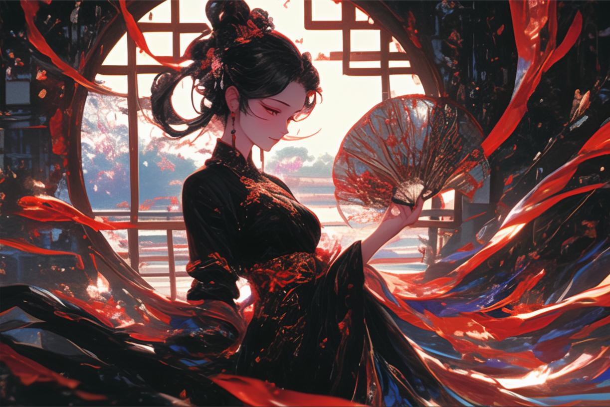柳叶眉,狐狸眼,贝齿红唇,手持蝉翼折扇。